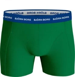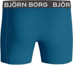 Voordeelverpakking met drie boxers van Bjorn Borg. In deze verpakking zitten drie verschillende boxers. Twee boxers zijn effen en de andere heeft een allover grafisch patroon. De boxers hebben een elastische tailleband met het logo van Bjorn Borg. Lauw strijken max 110°c, Machinewas 40°c, Niet bleken, Niet stomen, Wasdroger lage stand