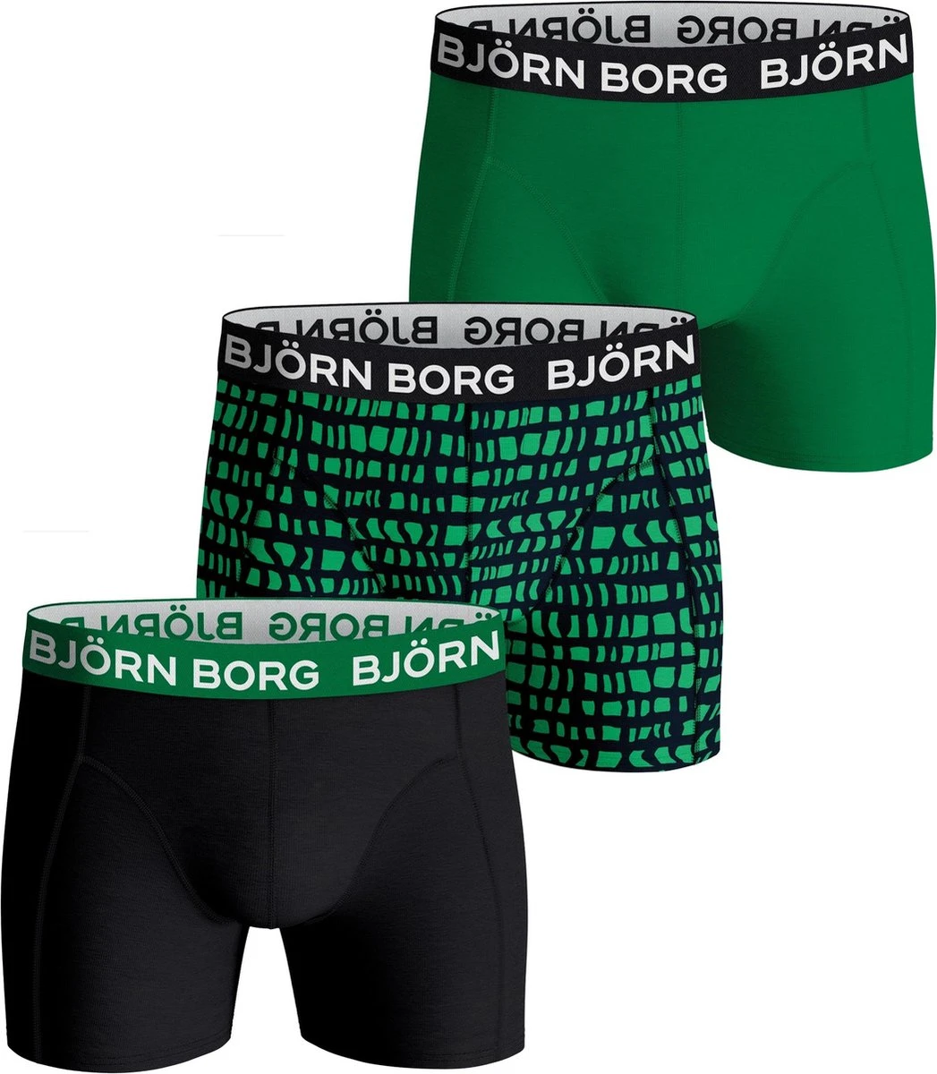 Bjorn Borg Boxershorts in een set van 3 stuks. Voorzien van normale lengte pijpjes die zorgen voor een perfecte ondersteuning en daarmee geschikt voor iedere man. Gemaakt van 95% katoen, 5% elastaan in een Aansluitende pasvorm voor maximale bewegingsvrijheid. Ademend, zacht en comfortabel dankzij het gebruik van natuurlijke materialen. Ontworpen om de hele dag door lekker te zitten met oog voor detail. Blijft ook na veelvuldig wassen mooi in vorm.
