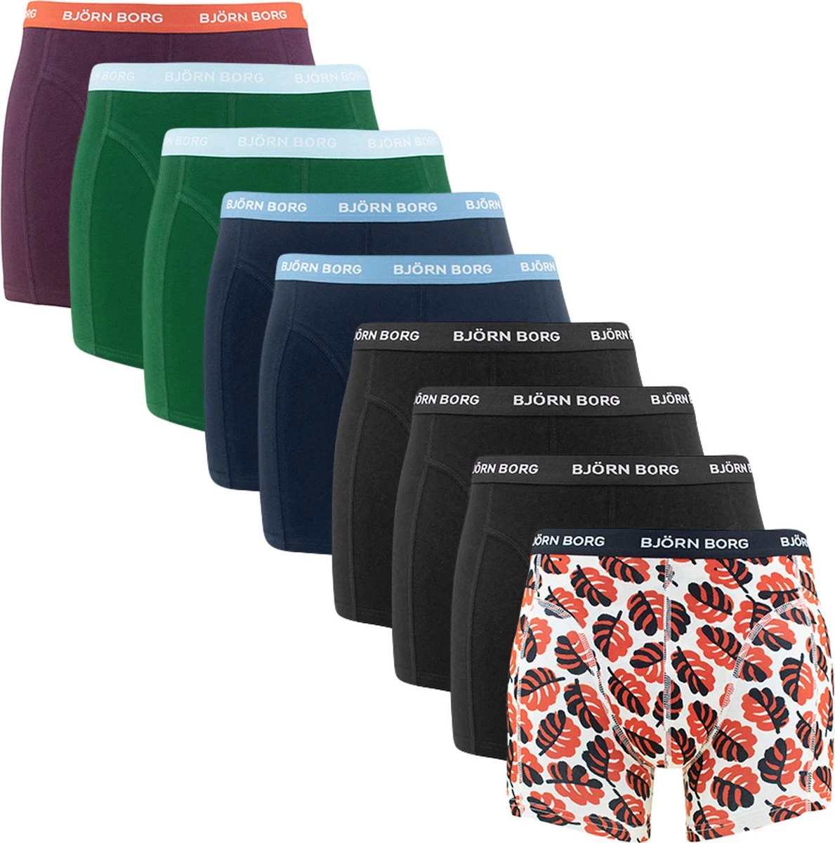 Björn Borg Boxershorts Essential (9 Pack) – Cotton Stretch Boxers Normale Lengte – Zwart – Groen – Blauw En Print – Maat: XL