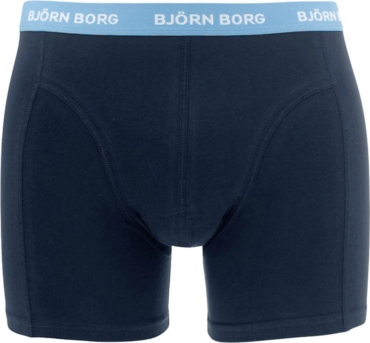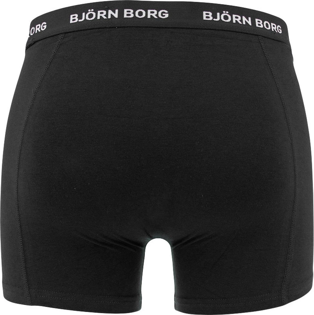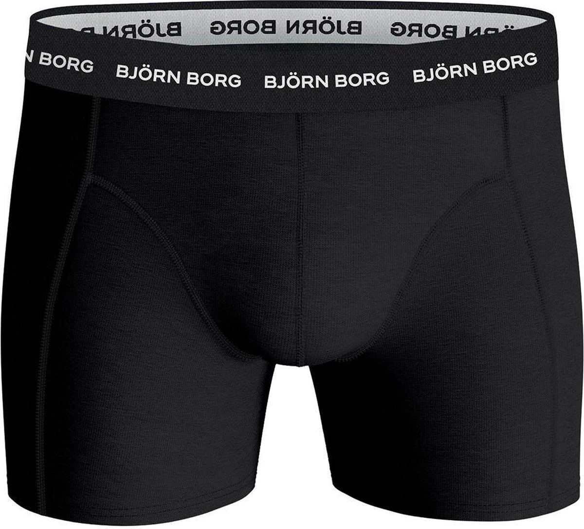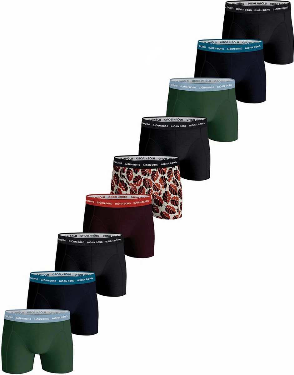 Voordeelverpakking met negen boxers van Bjorn Borg. In deze verpakking zitten negen verschillende boxers. Acht boxers zijn effen en de andere heeft een allover bloemen patroon. De boxers hebben een elastische tailleband met het logo van Bjorn Borg.