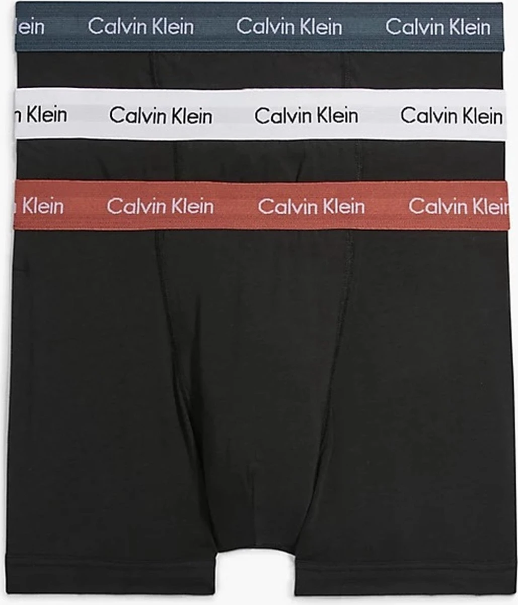 Calvin Klein Trunks (3-pack) – Heren Boxers Normale Lengte – Zwart Met Gekleurde Tailleband – Maat: M