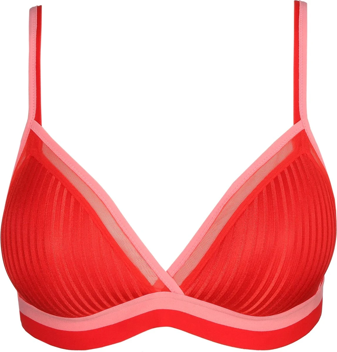 Bralette met mousse zonder beugel. Deze snit geeft je een mooi decolleté én een zelfverzekerd gevoel. De tule is gerecycleerd. Rouge is een opvallende kleur die staat voor kracht en verleiding.
