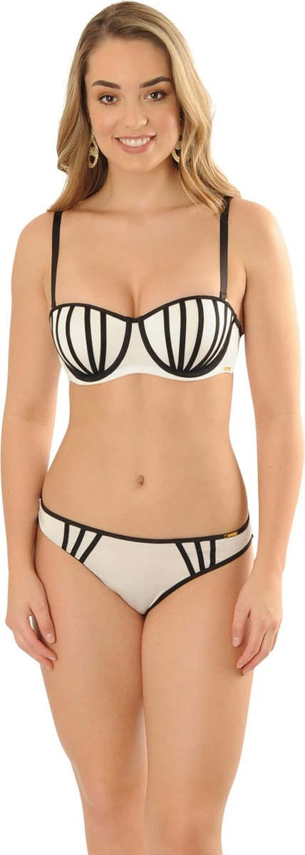 De Ceres brief is iedereens favoriet! Deze brief is gemaakt van witte microstof. Super comfy en voorkomt huidirritaties. De voor- en achterkant van de brief zijn afgewerkt met zwarte straps, dit geeft de Ceres een echte final touch. De achterkant heeft niet alleen zwarte straps, maar is ook deels gemaakt van mesh. Dit zorgt ervoor dat er een subtiele see through is bij de billen. Deze verleidelijke brief is echt een keeper! Net zo enthousiast als wij? Dan kan jij de brief combineren met de Ceres push-up BH of de Ceres balcony BH. Ons model is 175 cm en draag maat M.