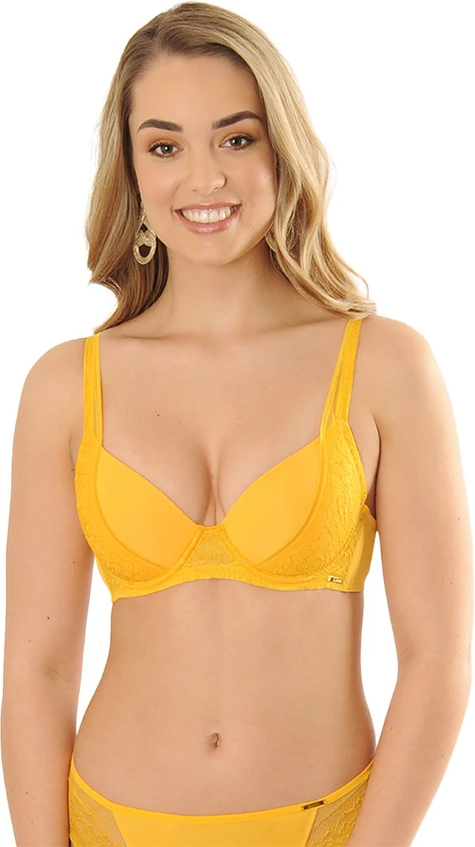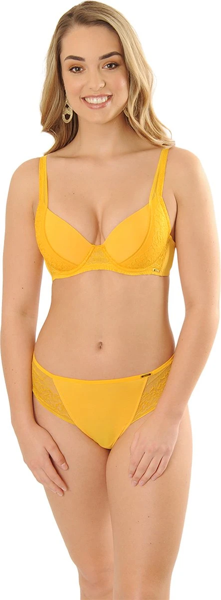 De Diana is toch echt wel een van onze nieuwe favorieten! Een T-shirt BH heeft een voorgevormde cup. Hierdoor heb altijd een mooie ronde borst onder strakke shirtjes. De cups van de Diana zijn afgewerkt met kant aan de zijkant van de cups wat doorloopt naar de bandjes. De kanten details maken de Diana op en top feminine. Maak jij jouw setje compleet? Check dan de bijpassende string en high brazilian. Ons model is 175 cm en draagt maat 75B.