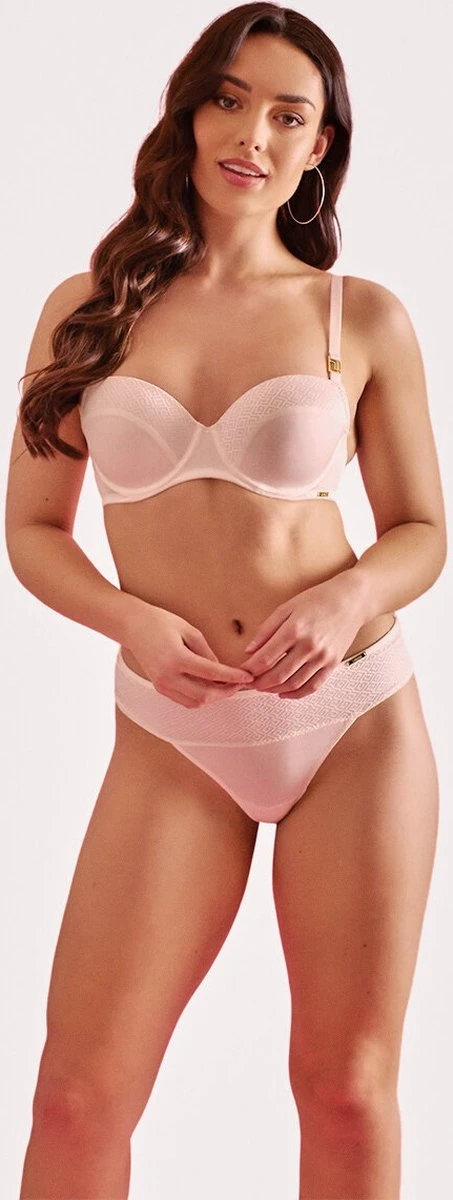 Deze voorgevormde beugel BH wil je hebben! De Roma heeft over de bovenkant van de cups een prachtige patroon lopen. De BH is afgewerkt met gouden details aan de bandjes. De Roma is gemakkelijk te dragen onder kleding en zal niet snel doorschijnen. Super handig en ook nog eens mooi! Wil jij het volledige setje scoren? Dan is er ook een bijpassende Roma string. Ons model is 175 cm en draag maat 75B.