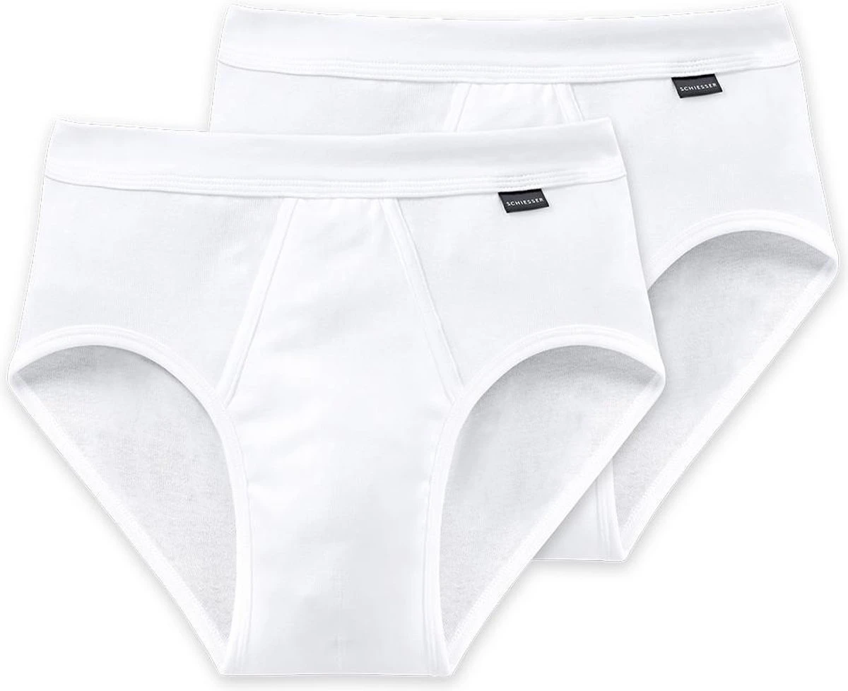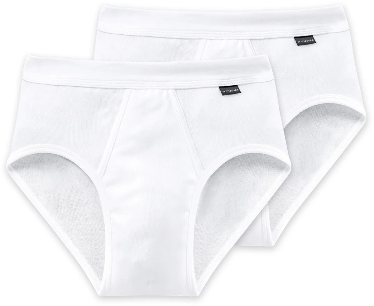 Set van 2 klassieke Maxi slips van Schiesser. Deze witte slip heeft een klassieke voorsluiting. Verkrijgbaar in de maten M t/m XXXL.