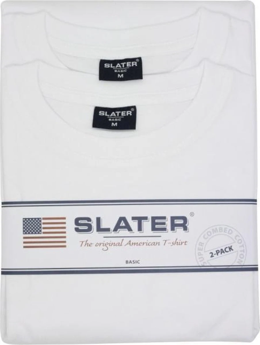 Slater 2500 – BASIC 2-pack T-shirt ronde hals korte mouw wit XL 100% katoen
