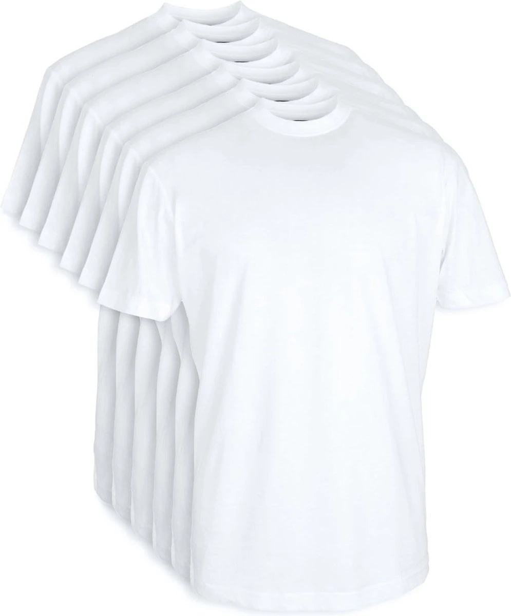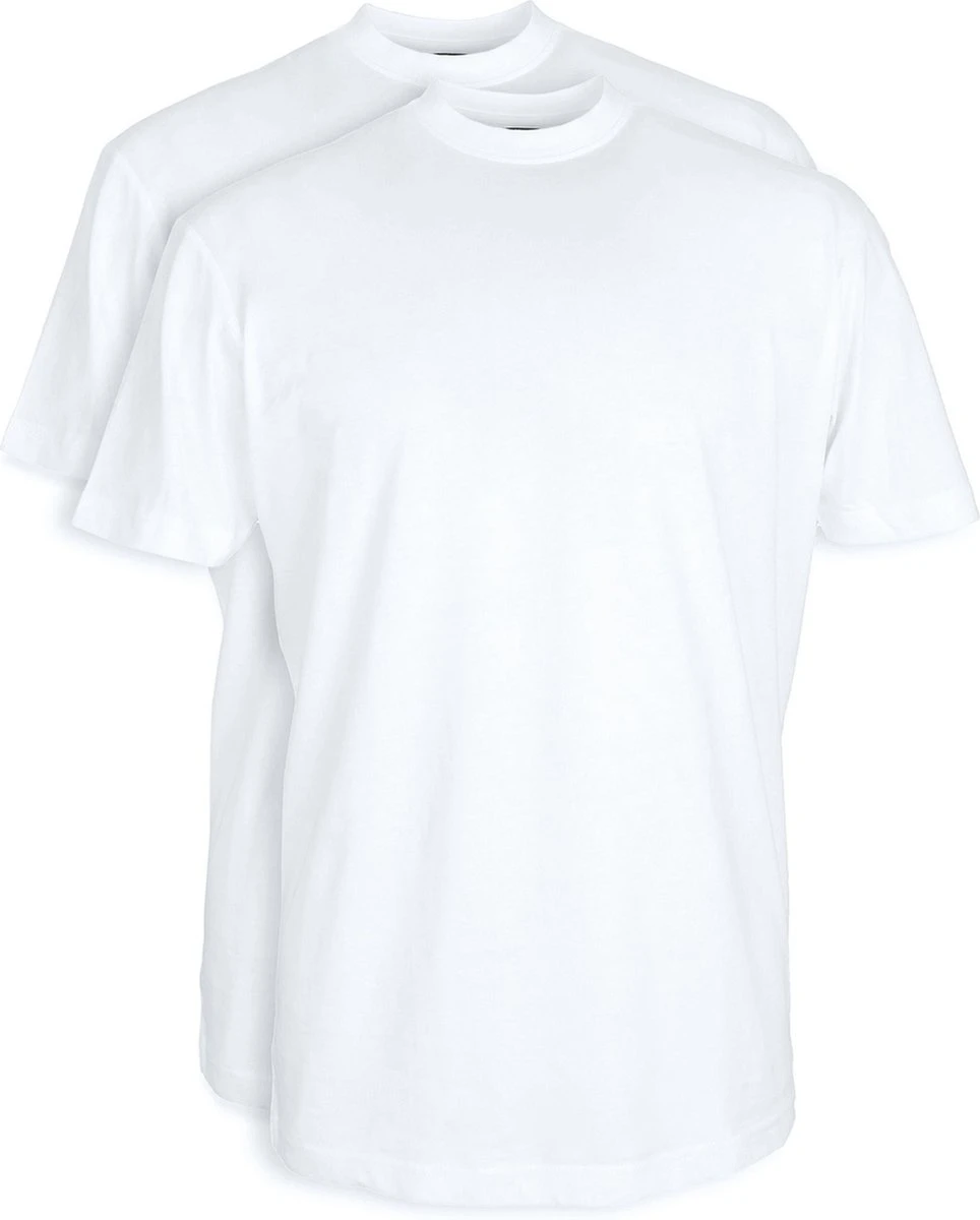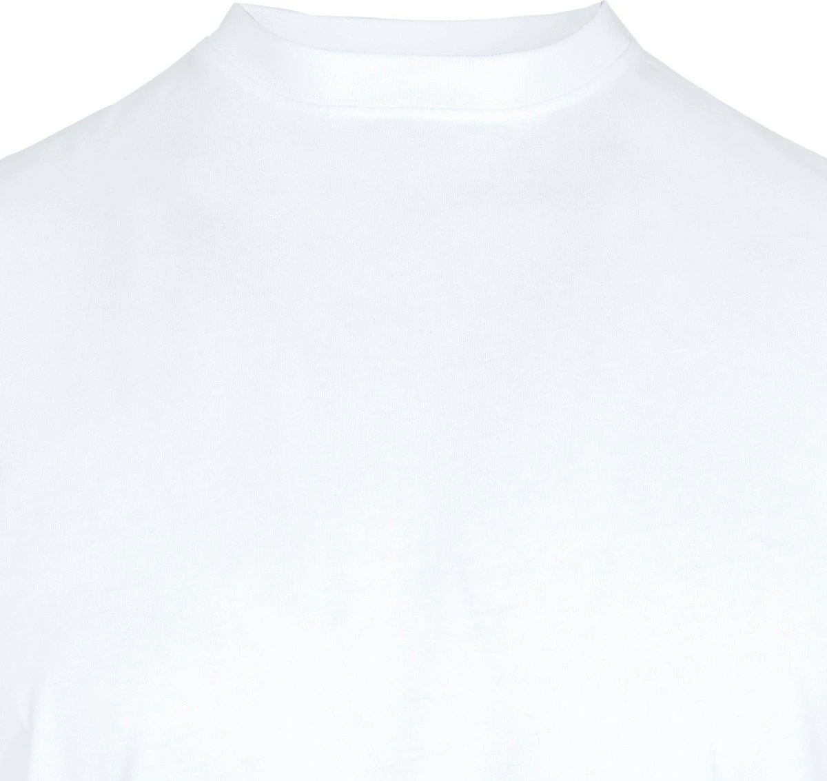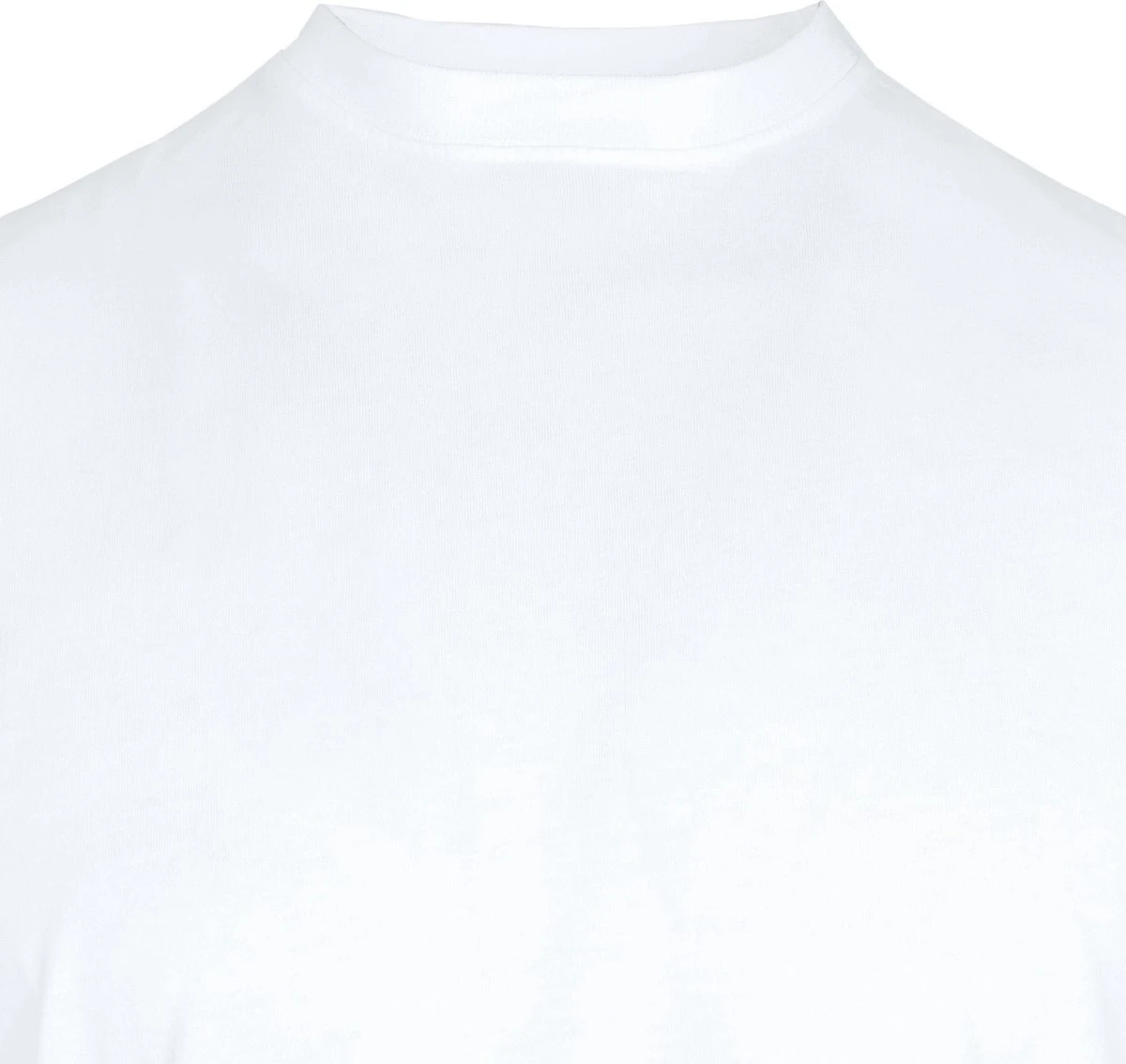 Set van 2 witte, basic T-shirts met hoog gesloten hals. Deze witte Obra T-shirts met hoog gesloten, ronde hals van ons eigen Suitable label zijn de perfecte basis voor jouw garderobe. Draag de herenshirts bijvoorbeeld onder je overhemd of trui voor extra warmte en comfort. Dankzij de brede boord en de ruime pasvorm zitten de basic Obra T-shirts erg lekker en kan je ze dagelijks dragen.Luxe kwaliteit biologisch katoen De shirts zitten verpakt in een voordeelverpakking van 2 stuks en zijn volledig gemaakt van fijn gekamde, biologisch katoen. De shirts zijn gemaakt van 150 grams katoen en zijn bewerkt met een Soft Silk Finish. Hierdoor voelt de stof heerlijk zacht en glad aan. De korte mouwen zijn voorzien van een gezoomde afwerking. De boord heeft een mooie, brede boord van 17mm. 100% biologisch katoen Rechte Regular-Fit pasvorm Bewerkt met een Soft Silk Finish Better Cotton Initiative (BCI) gecertificeerdWasadvies Was de T-shirts altijd voordat je ze de eerste keer draagt. Er kan tijdens deze eerste wasbeurt overtollige vezelstof vrijkomen. Dit is puur residu en zal de kwaliteit van de T-shirts niet aantasten. Was je witte kledingstukken nooit samen met gekleurde kleding. Dit kan zorgen voor verkleuringen. Daarnaast kunnen de witte katoenvezels zich hechten aan gekleurde kleding. Om beschadigingen te voorkomen wordt afgeraden om katoen sneller dan 1400 toeren te laten centrifugeren.